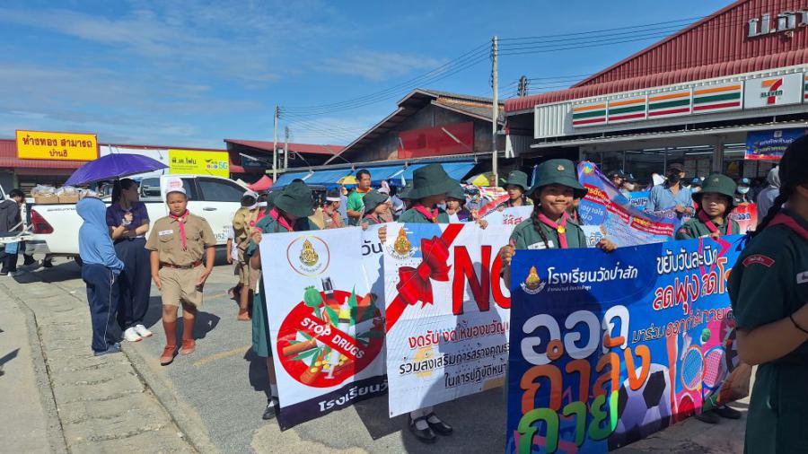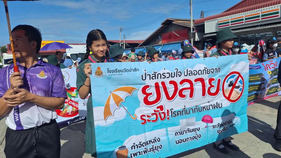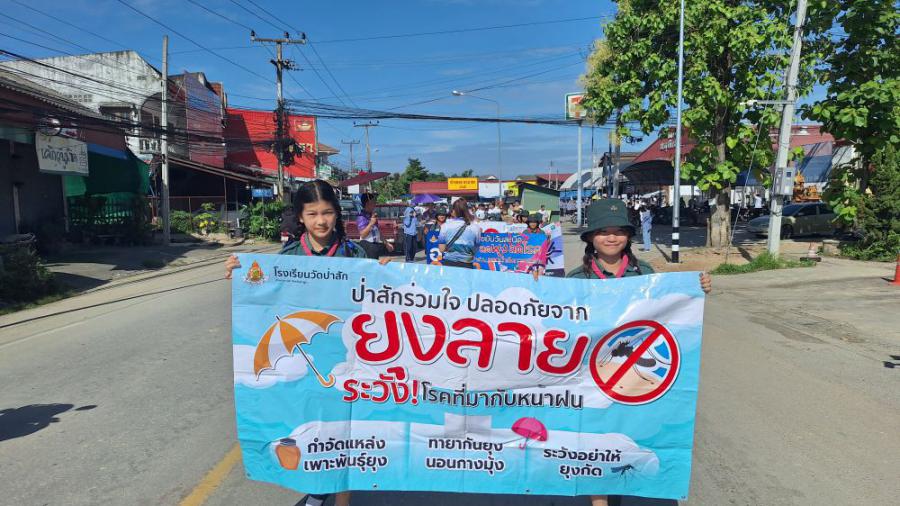 วันที่ 25 มิถุนายน 2568 โรงเรียนวัดป่าสักร่วมเดินขบวนรณรงค์ในโครงการป้องกันและระงับโรคติดต่ออุบัติซ้ำ อุบัติใหม่ ประจำปีงบประมาณ 2568 โดยนายปริญญา ขาววัฒน์ นายกเทศมนตรีตำบลบ้านธิ เป็นผู้กล่าวรายงานวัตถุประสงค์ตามโครงการดังกล่าว พร้อมด้วย คณะผู้บริหาร สมาชิกสภาเทศบาลตำบลบ้านธิ หัวหน้าส่วนราชการ กำนันตำบลบ้านธิ ผู้ใหญ่บ้าน ประธาน อสม. สมาชิก อสม. ครู นักเรียนโรงเรียนวัดป่าสัก และภาคีเครือข่ายที่เกี่ยวข้อง ดำเนินการเดินรณรงค์การป้องกันและระงับโรคติดต่ออุบัติซ้ำ อุบัติใหม่,โรคไข้เลือดออก และต่อต้านยาเสพติด ในเขตตำบลบ้านธิ ตั้งแต่ ตลาดป.ธุรกิจยนต์ ถึง หน้าธนาคารกรุงเทพสาขาบ้านธิ S:0