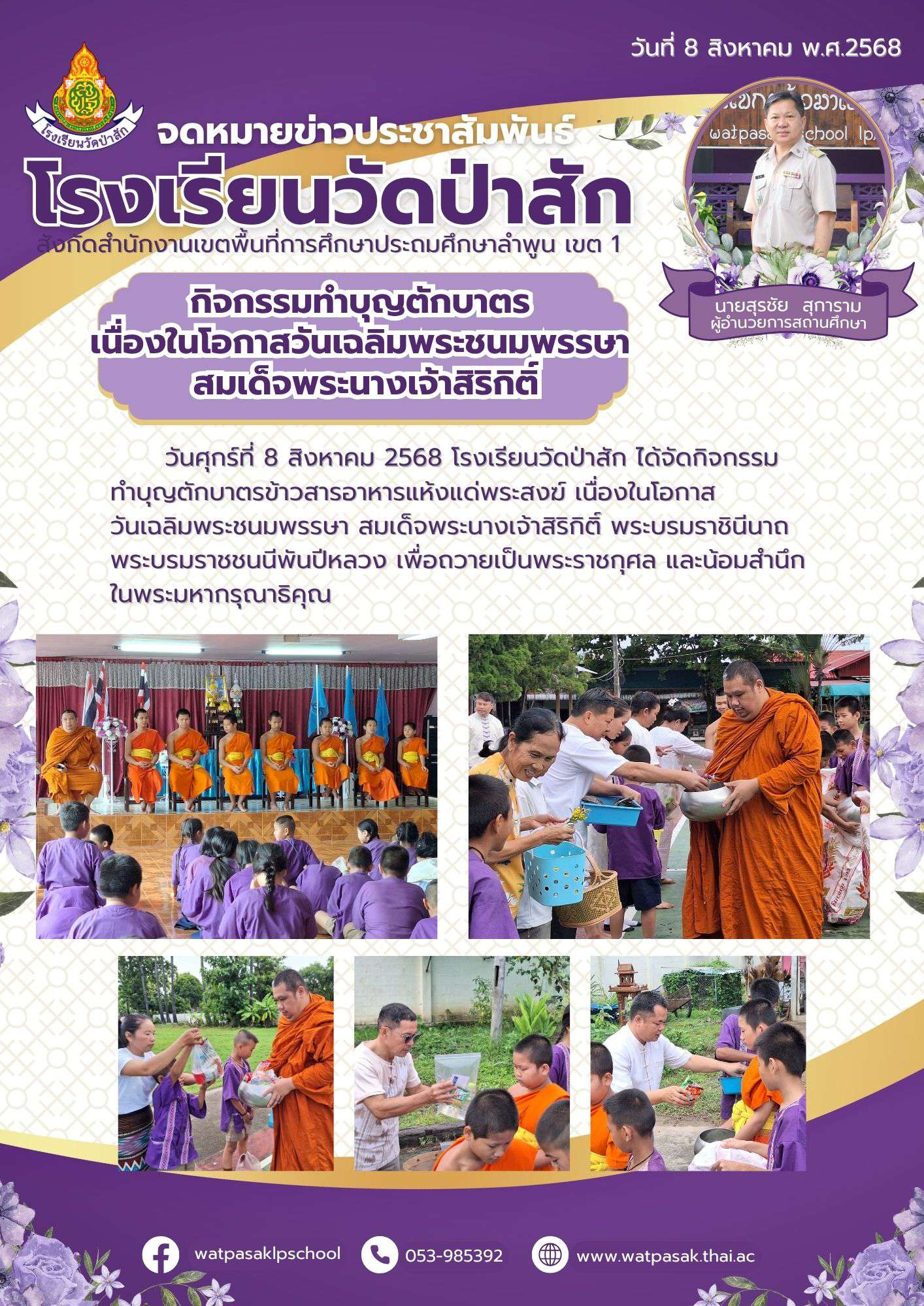 กิจกรรมทำบุญตักบาตรข้าวสารอาหารแห้งแด่พระสงฆ์ เนื่องในโอกาสวันเฉลิมพระชนมพรรษา สมเด็จพระนางเจ้าสิริกิติ์ พระบรมราชินีนาถ พระบรมราชชนนีพันปีหลวง
